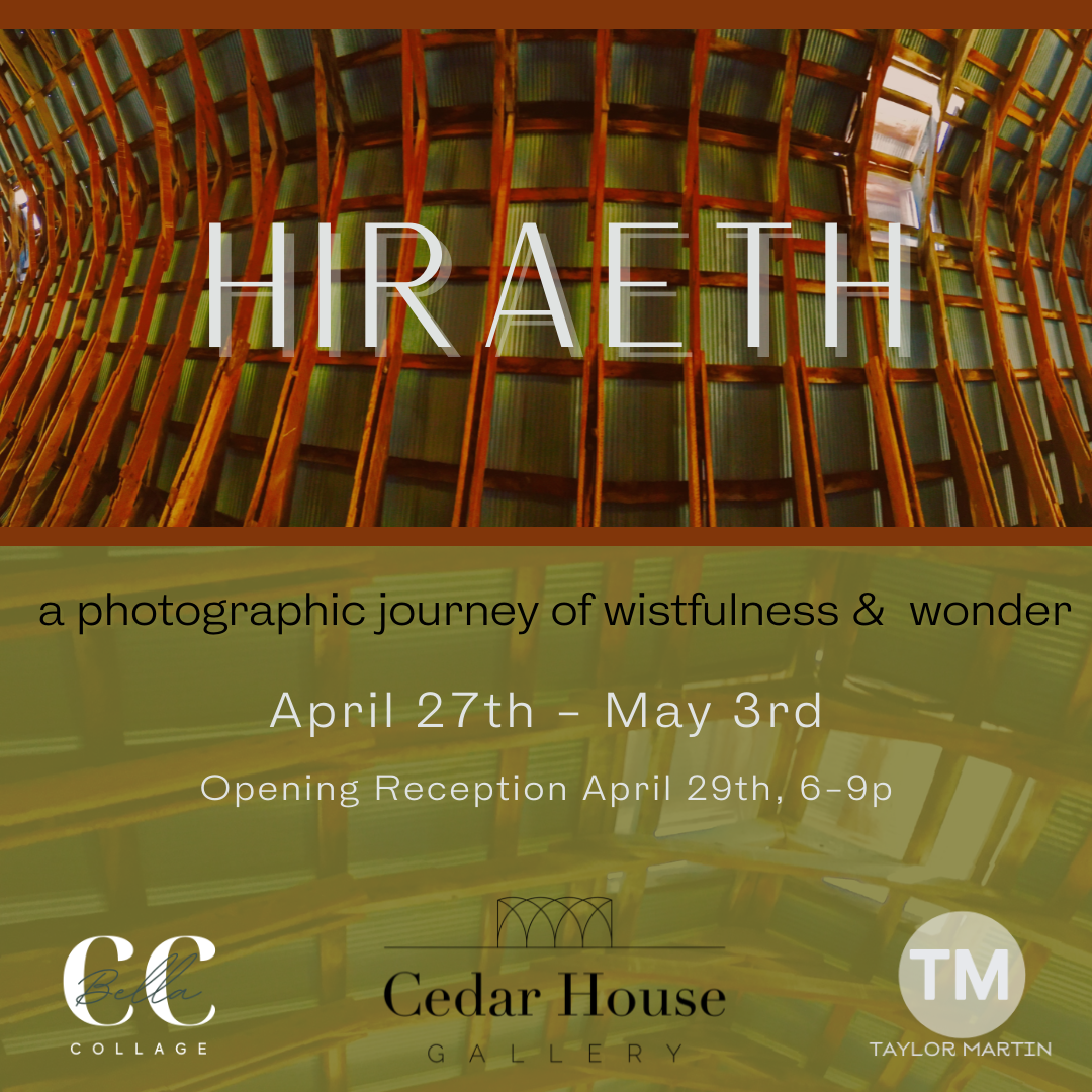 A new exhibition, Hiraeth, by Taylor Martin & Courtney C. Trowman opens Wednesday April 27th at the Cedar House Gallery featuring about 50 new works of photography that will be on display through Tuesday May 3rd, with an opening reception Friday evening April 29th.
